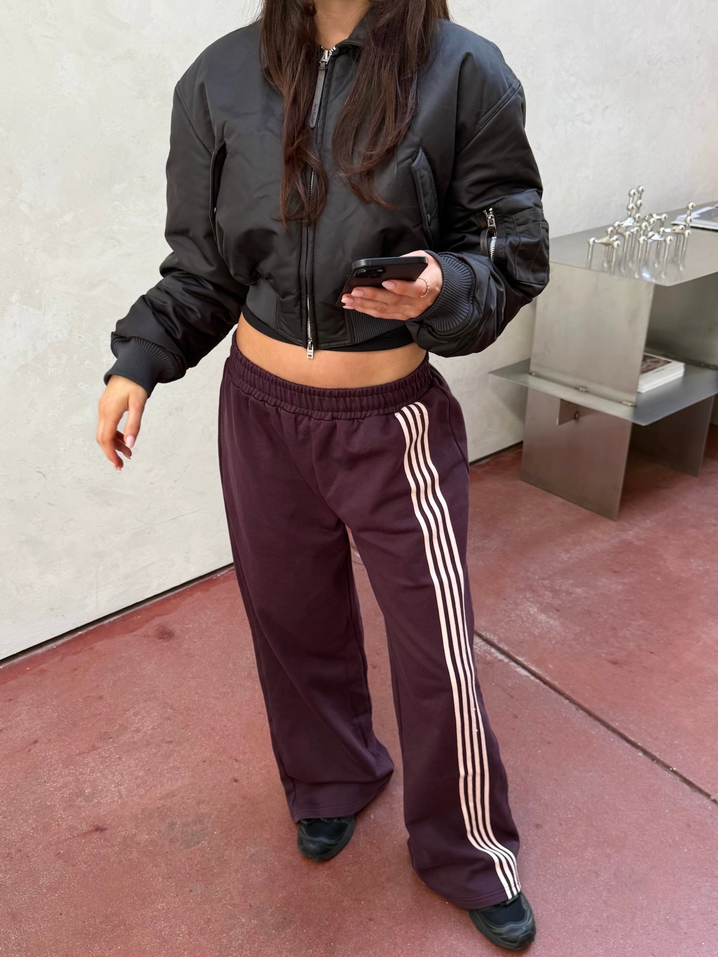 Asymmetric Stripe Track Pant - Plum